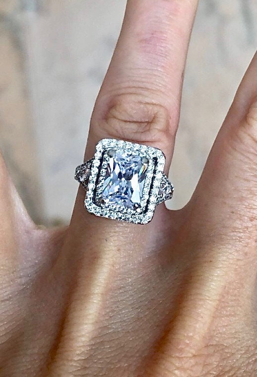Radiant cut diamond halo engagement ring, Finest diamond ... from i.etsystatic.com It's so easy and takes only seconds. Shop the latest cushion cut halo engagement ring deals on aliexpress. Most halo engagement rings have a single halo of pave, four prongs, or shared prong white diamonds, but some other variations of the halo can include gems and different colored stones. Like most engagement rings, halo rings are available in four ring metals: White gold halo rings and platinum halo rings both have a silvery shine that enhances the sparkle of diamonds. If the love of your life is captivated by old world romance and storybook love affairs, barkev's halo engagement rings are sure to make her weak in the knees. Halo rings feature a frame of smaller diamonds encircling the center stone. Halo diamond engagement rings are a popular and versatile style for modern brides.